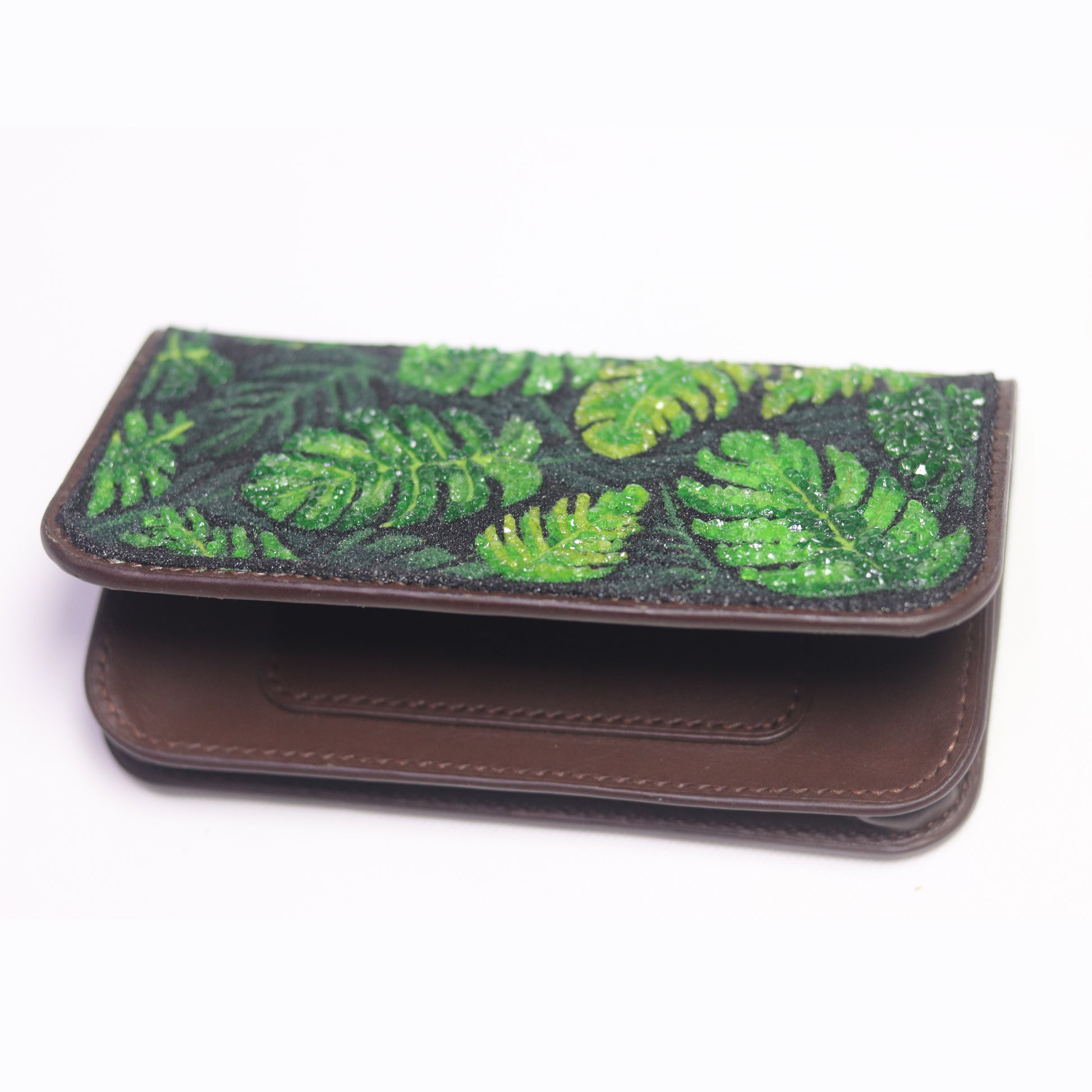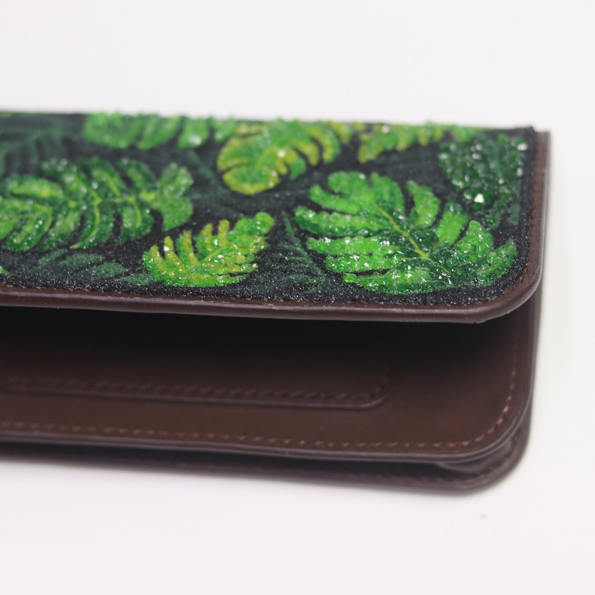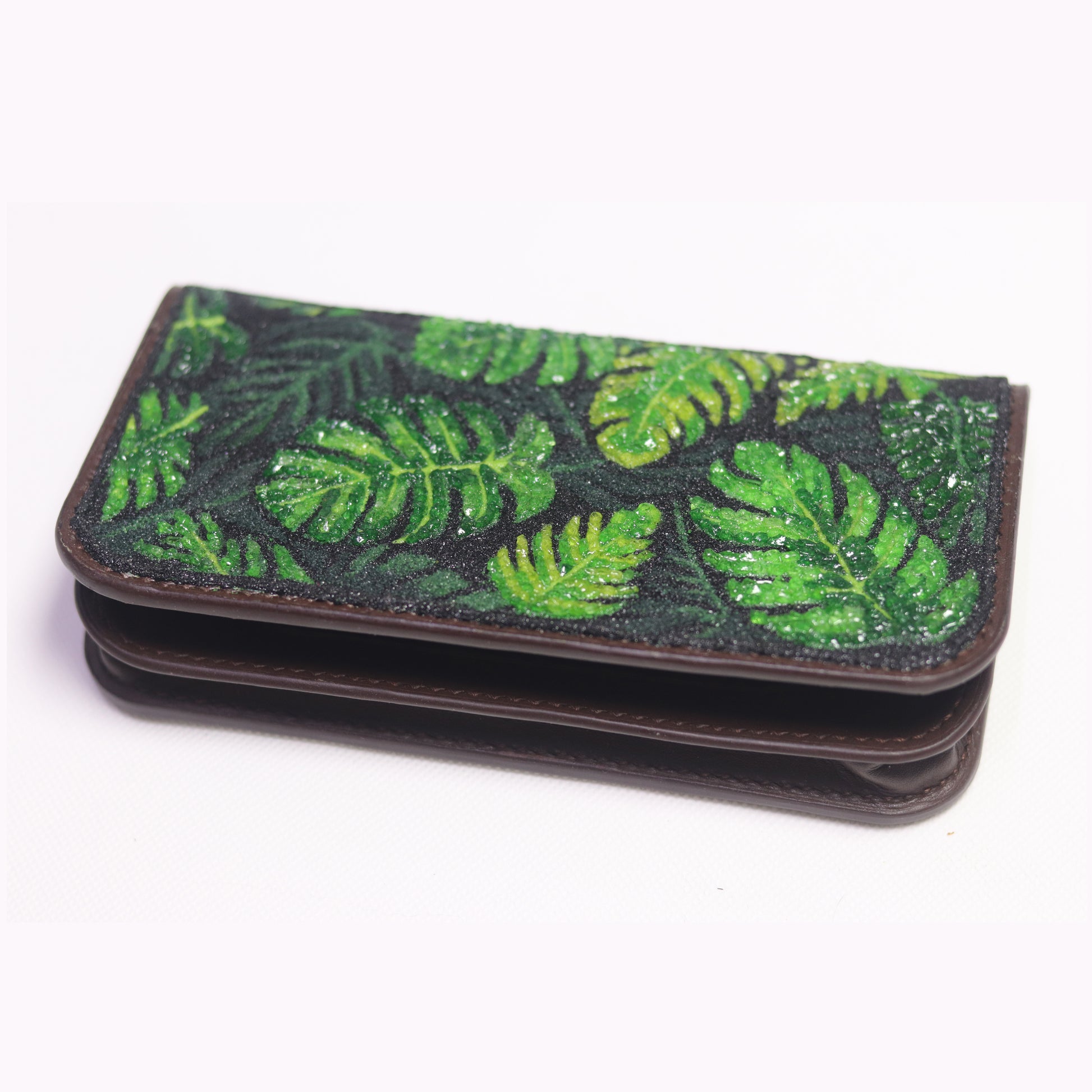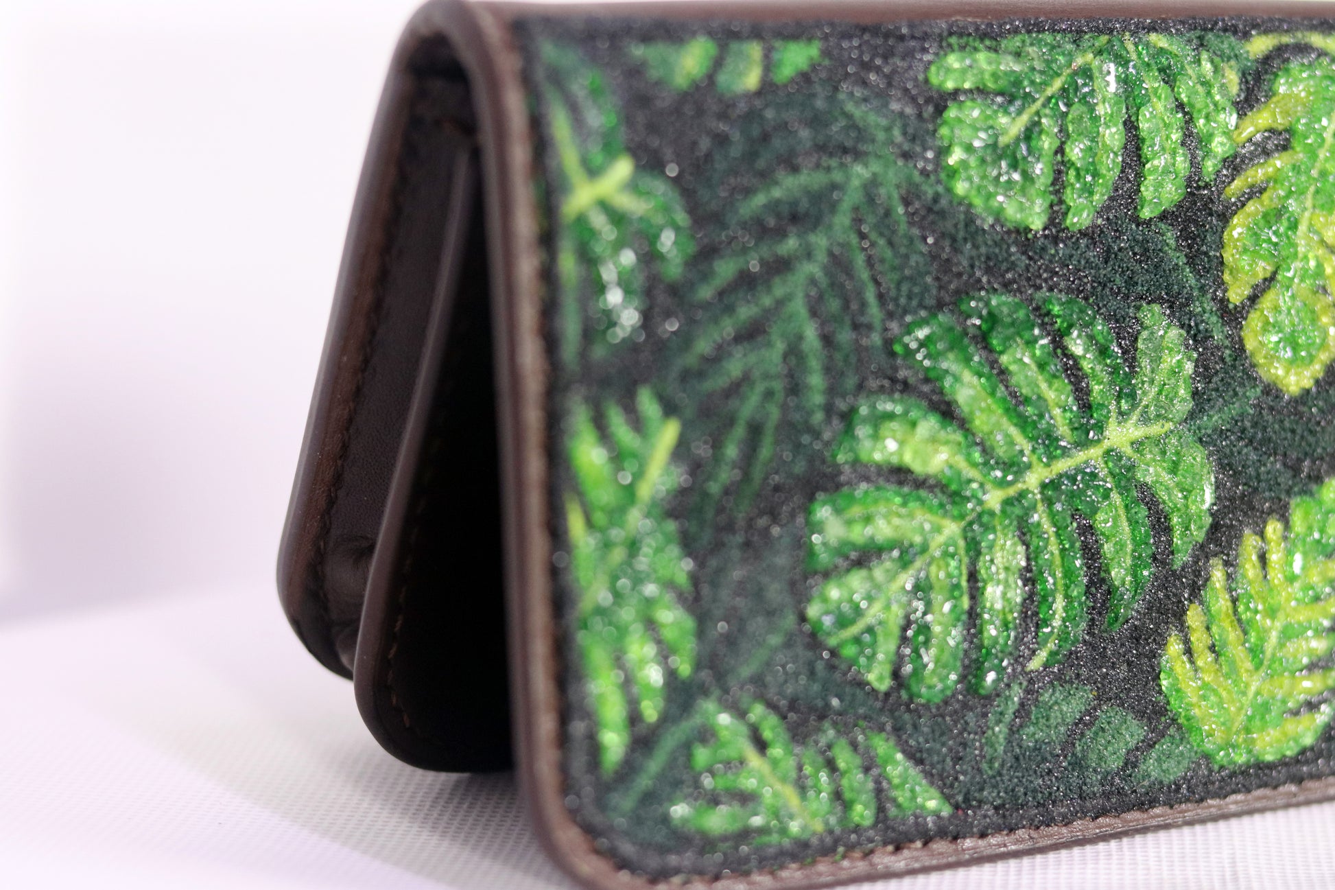 Materials: Full-grain leather, gemstone fragments (art panel)