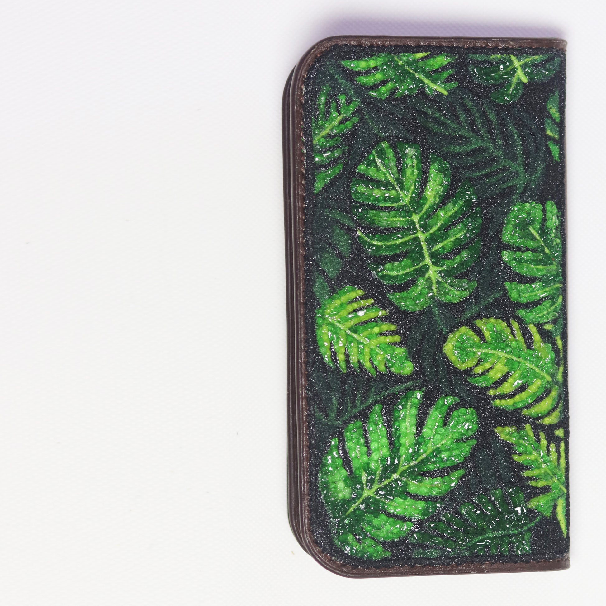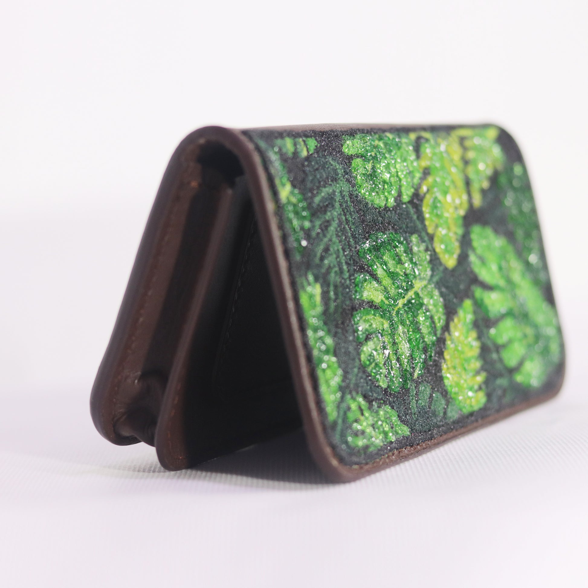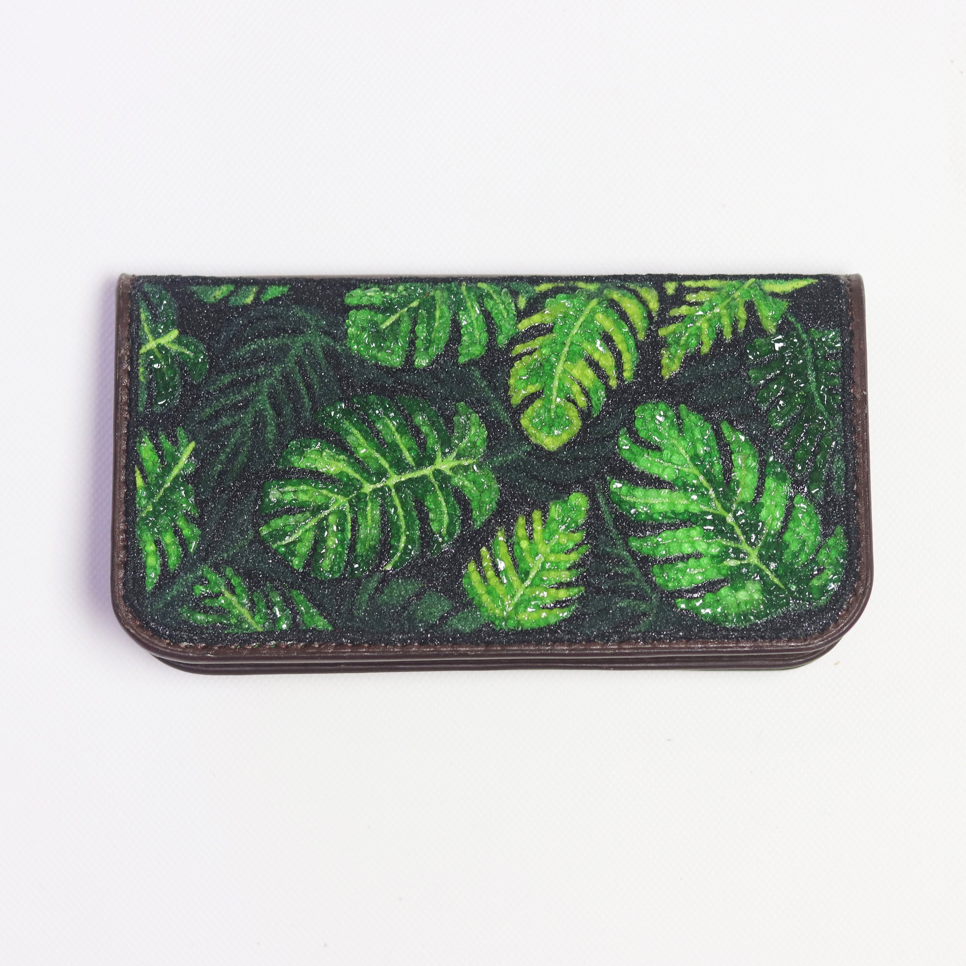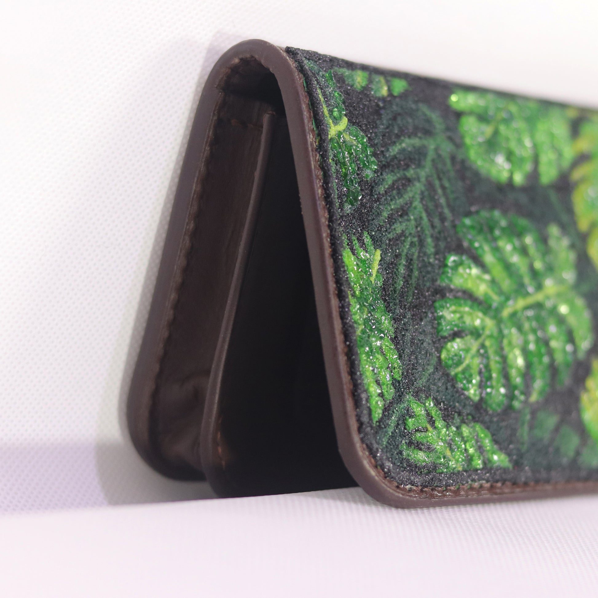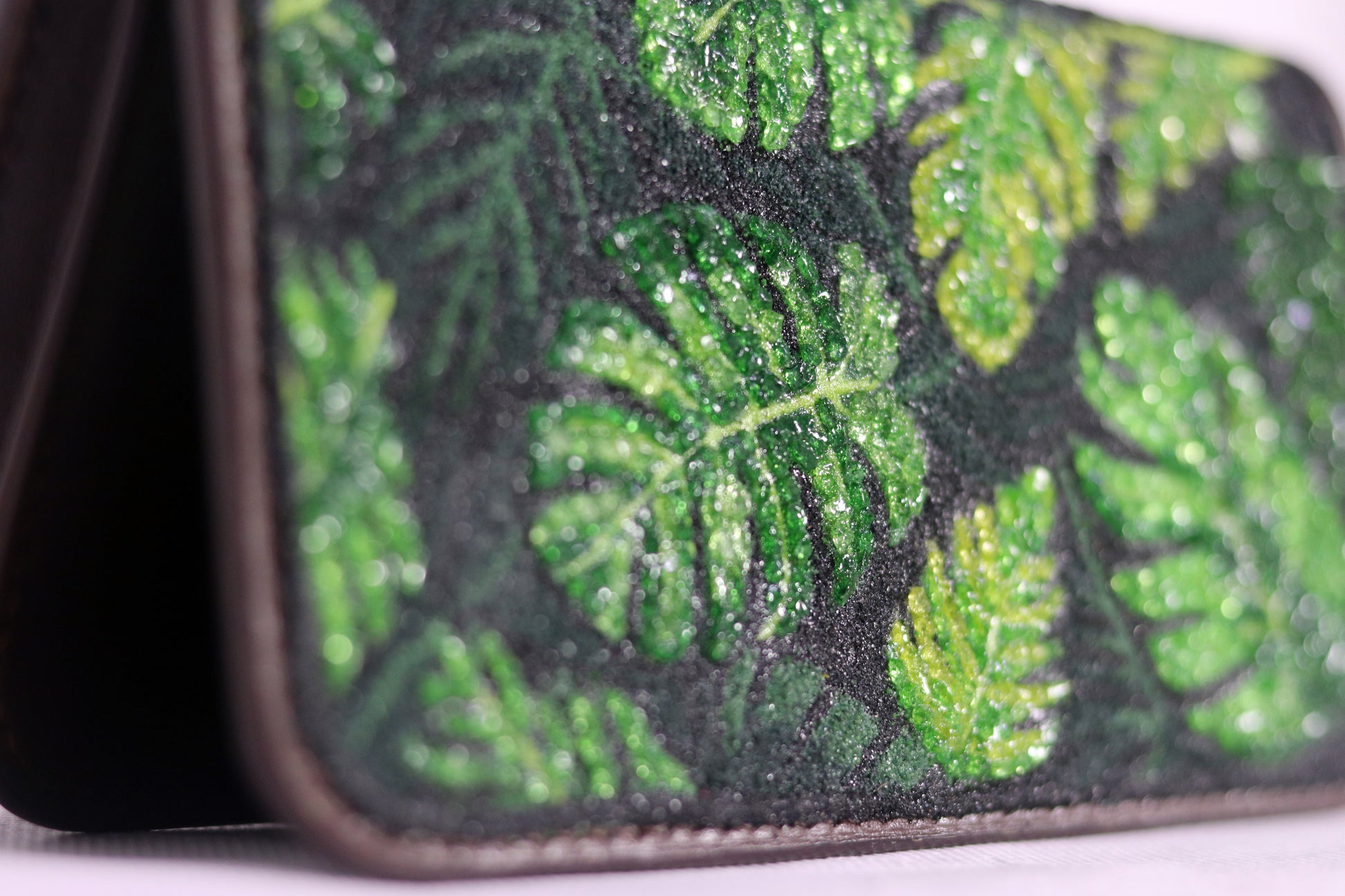 Materials: Full-grain leather, gemstone fragments (art panel)